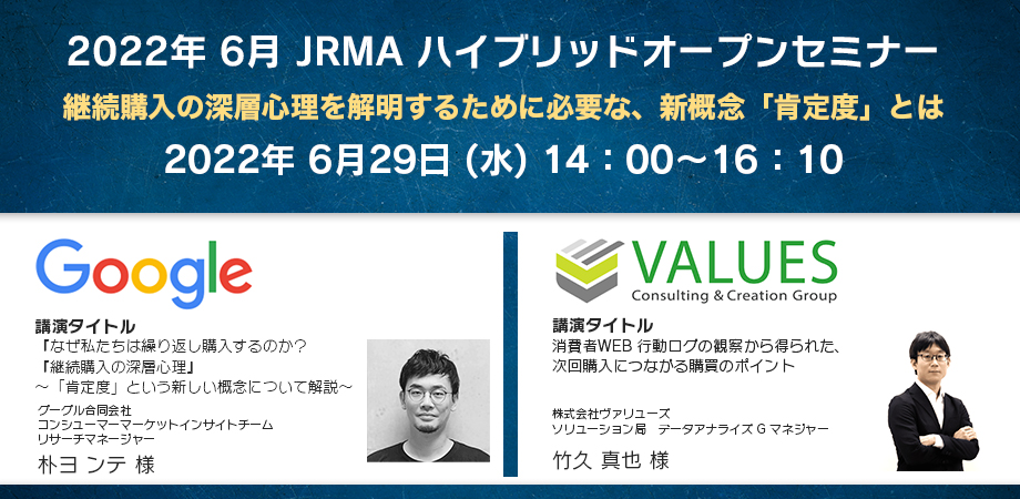 Google マーケットインサイトチームが実施した調査によって明らかとなった、リピート購入のメカニズム。本講演では、商品選択に対する自信の強度を意味する新概念「肯定度」がLTV最大化に寄与すること、肯定度を高める情報探索などについて解説いたします。また、WEB上の消費者行動と意識調査を掛け合わせた分析によって「次回購入につながる購買のポイント」を把握する手法をヴァリューズがご紹介します。