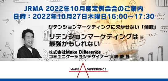 お知らせ 2022年10月13日 株式会社Make Difference コミュニケーションデザイナー 大嶋 慶 氏著書のご案内 「超」戦略的に聴く技術 2022年10月度定例会合講師 株式会社Mak 続きを読む